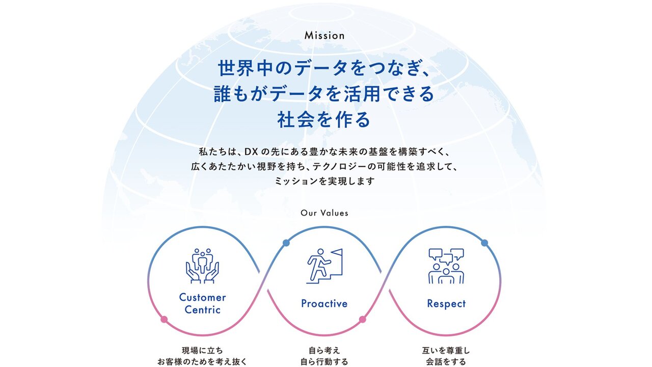 「M」は「Mission」(使命)を意味し、「世界中のデータをつなぎ、誰もがデータを活用できる社会をつくる」という私たちの使命を象徴しています。