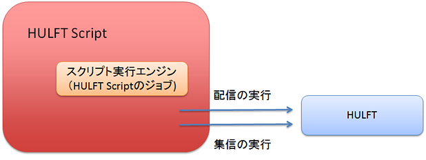 従来のHULFTで実行されるジョブは、HULFTとは全く別の外部実行ファイルを実行するというものでしたが、HULFT Scriptで作られたスクリプトを実行するジョブは、HULFT Scriptが直接ジョブを行うというモデルなのです。