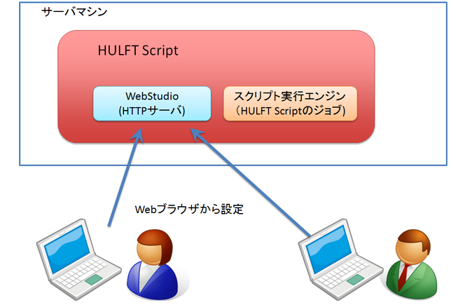 HULFT Scriptがインストールされた機器では、HULFT ScriptのGUI(Graphical User Interface)を実現するためWebサーバ「HULFT Script Studio」が起動されます。