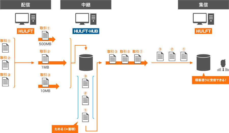 HULFT-HUBの蓄積機能によって「ファイル転送の順番」を維持