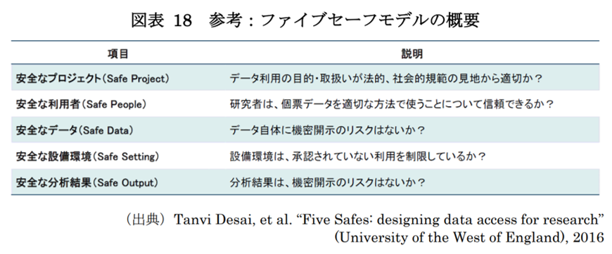 ファイブセーフモデルは、イギリスの統計局(ONS)において、機密情報を利用した研究を規律するために2003年から運用されてきたフレームワークで、現在はEU全域で、統計の個票データ活用時の安全対策ルールとして広く採用されています。