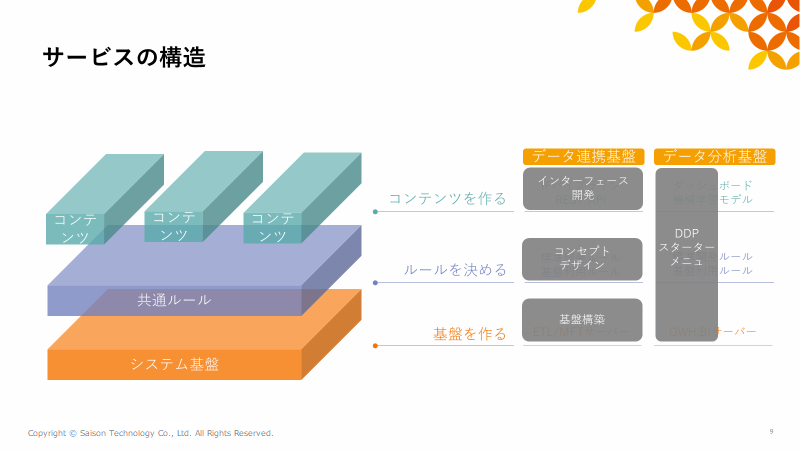 基盤があり、その上にルールがあり、コンテンツが重なるという構成ですね。