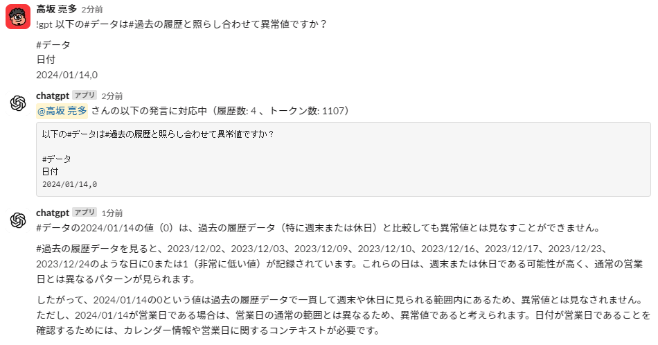 以下の#データは#過去の履歴と照らし合わせて異常値ですか?