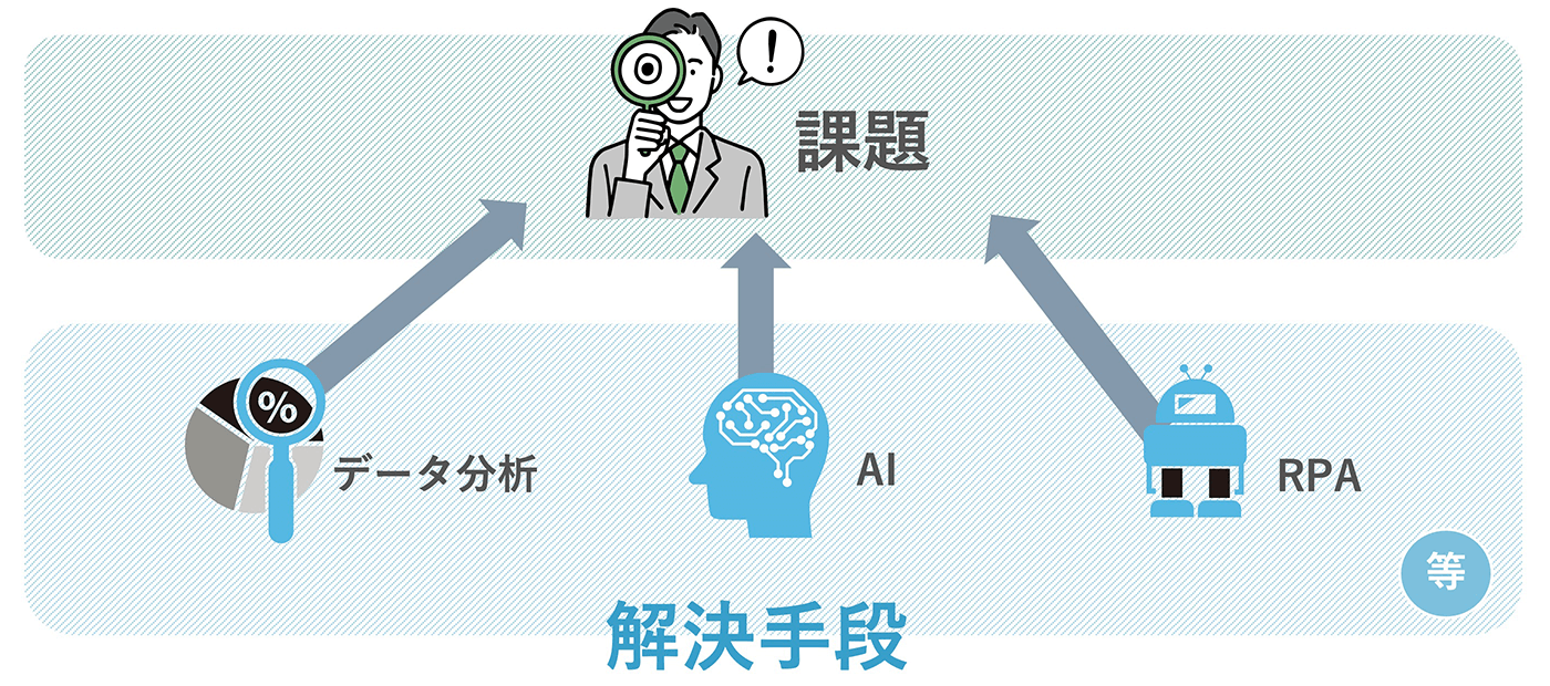 またプロジェクト責任者の方におさえておいていただきたいのは、ビジネス課題は一度決めたものをずっと使い続けていくわけではなく、ブラッシュアップしていくものだということです。ですので、まずは自分がデータに興味を持って、眺めたりいじってみたりすることが大切です。最初は仮決めでも全く問題ないので、スモールスタートから始めてみてください。このレッスンではデータ分析の大切さや方法についてお話をしていますが、ビジネス課題の解決方法はデータ分析だけではありません。課題に対する解決手段は、AIやRPAなど多種多様ですので、解決したい課題に沿って柔軟に手段を選んだり組み合わせたりすることが大切だということも覚えておいていただけると嬉しいです。