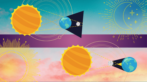 - 月食:「太陽から月に届く光」を「地球」が遮る