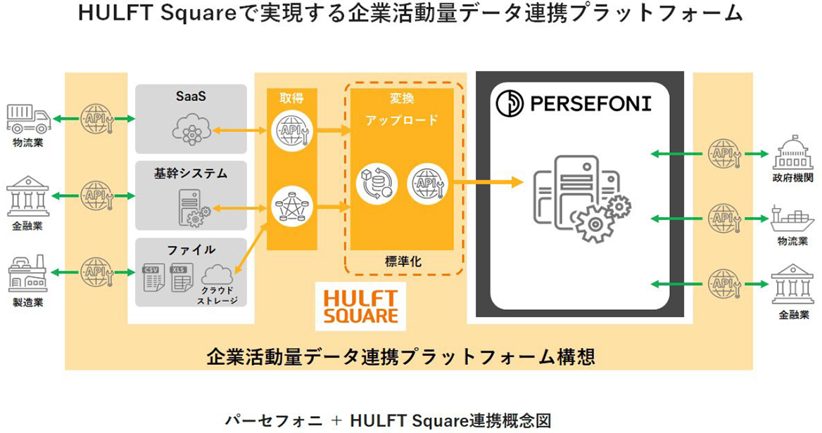 Persefoniは炭素会計プラットフォーム(CMAP)のグローバル リーディングカンパニーであり、PCAF(金融向け炭素会計パートナーシップ)の公認パートナーで、財務報告システムレベルの高精度の炭素会計が特徴です。「パーセフォニ」と、金融業界で圧倒的な導入実績のあるHULFTシリーズiPaaS「HULFT Square」で、CO2排出量だけでなくすべての企業活動データも連携可能。国内外のグループ企業、取引先の状況も含め、ESGレポートのE(環境)のみならず、S(社会)とG(企業統治)も含めたレポートも作成可能になります。