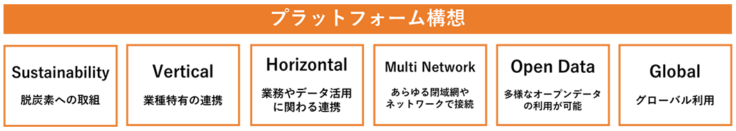 さらに、このデータ連携を実現させるために「HULFT Square プラットフォーム構想」を立て、「Sustainability」「Vertical」「Horizontal」「Multi Network」「Open Data」「Global」の6つのカテゴリに関わるデータ連携を、パートナー様との協業やセゾンテクノロジー独自のサービスと組み合わせることにより実現していきます。