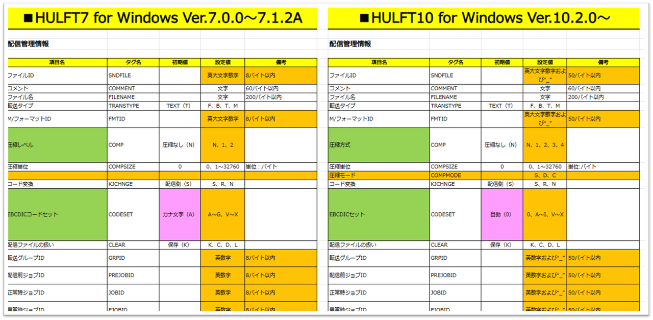 「運用全体への影響」は、HULFT10で追加・改善・非互換などが生じる機能を記載し、「管理情報の変更点一覧」は、「項目名の変更」「項目の廃止」「項目の分割」など、HULFT10における管理情報の変更点を一覧にして記載しました。
