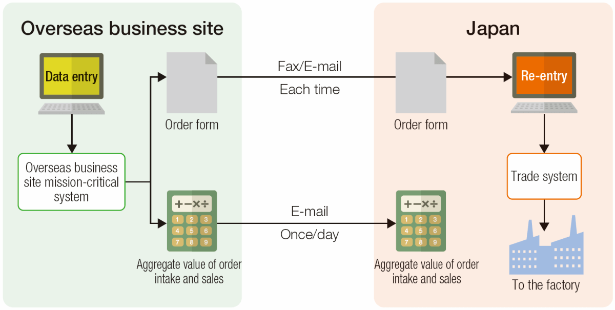 Using HULFT and HULFT-HUB for efficiently sharing data with overseas operations.
