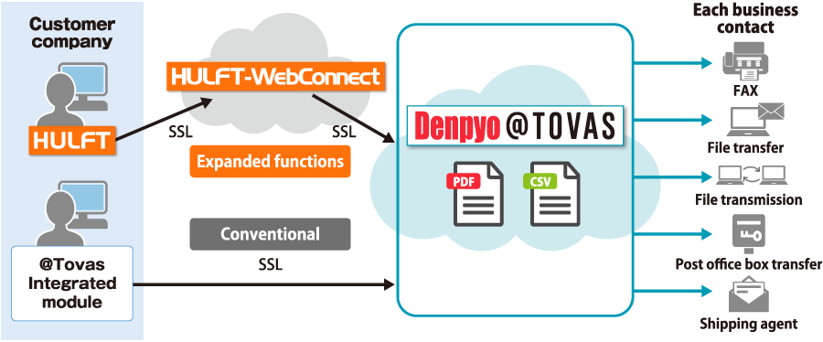 For the communication component they chose HULFT-WebConnect , which, like Denpyo@Tovas, is capable of secure transfer via the Internet. With the additional consideration that forms @Tovas could be marketed to the widespread users of HULFT, Kokuyo resolved to incorporate HULFT as a new interface.