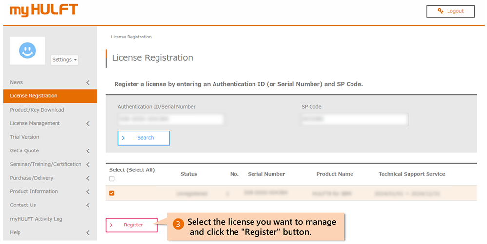 Please register your license in "myHULFT" based on the ID notification (delivery e-mail).