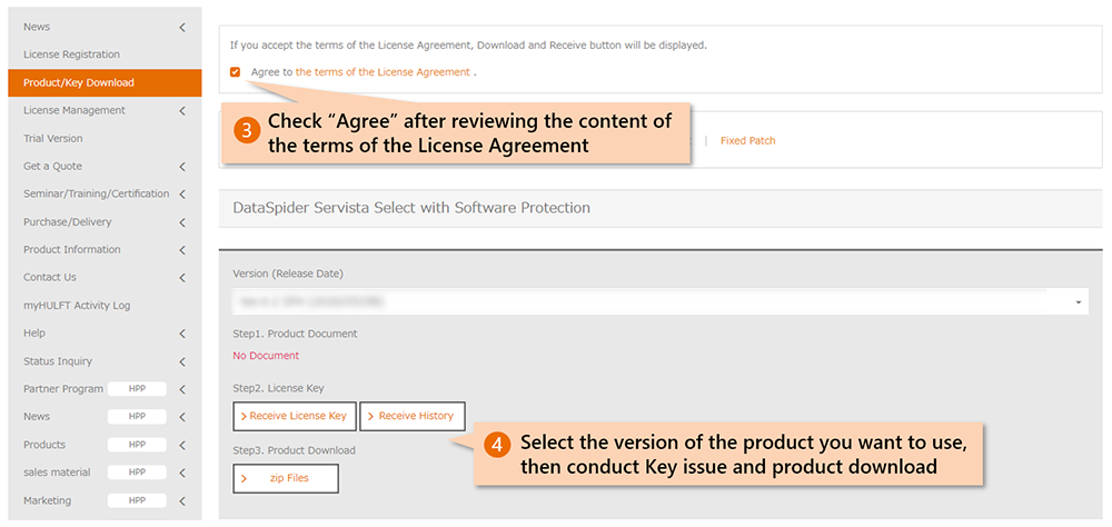 This page will guide you through the process of product download and key issue (*"Product Key" for HULFT Family products and "License Key" for DataSpider products).