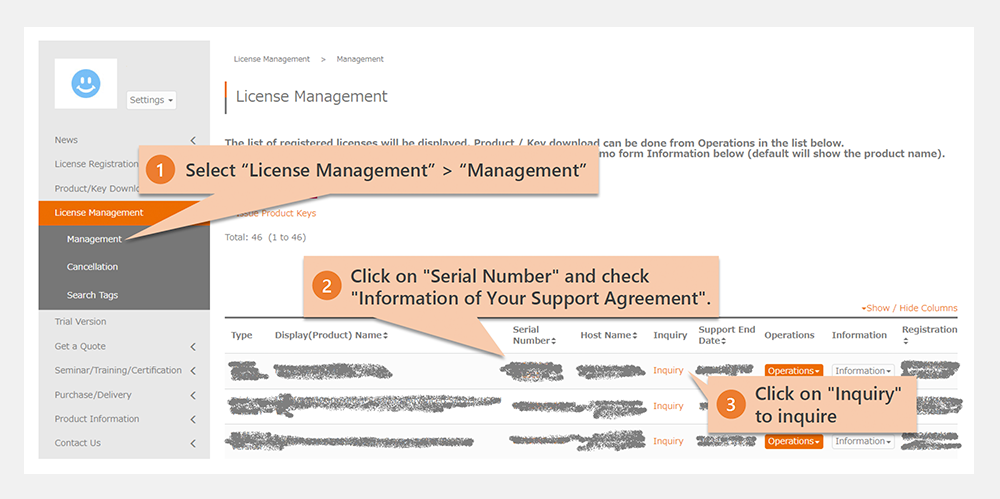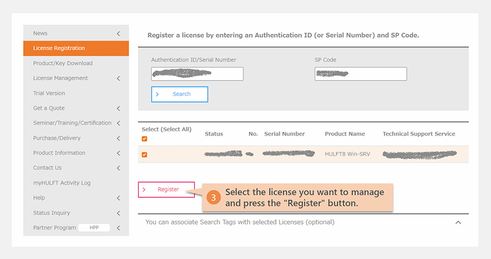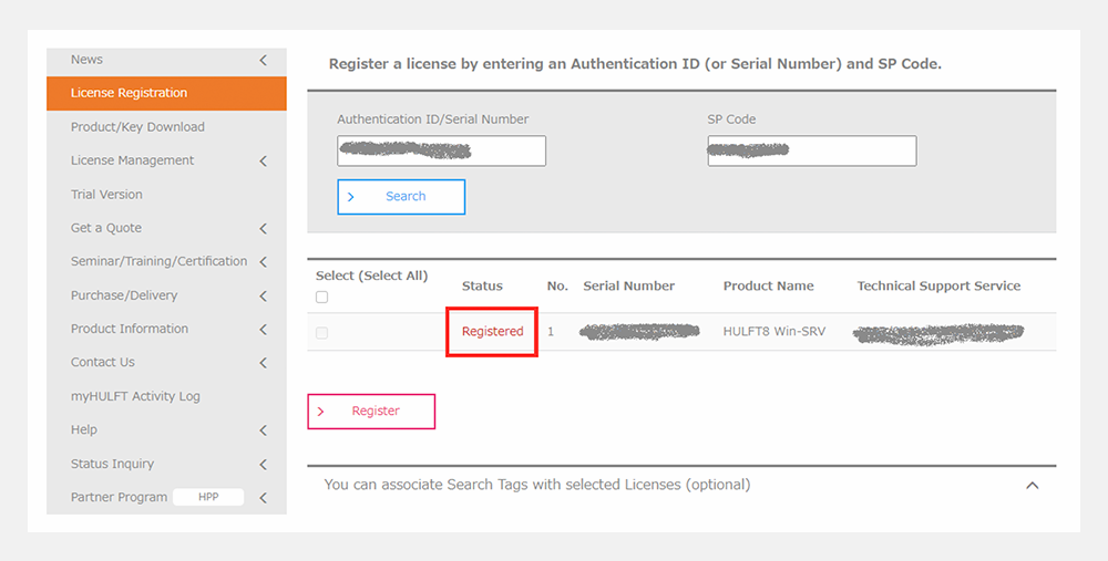 If "Registered" is displayed in the management status after clicking the "Register License" button, license registration has already been completed and is not required.