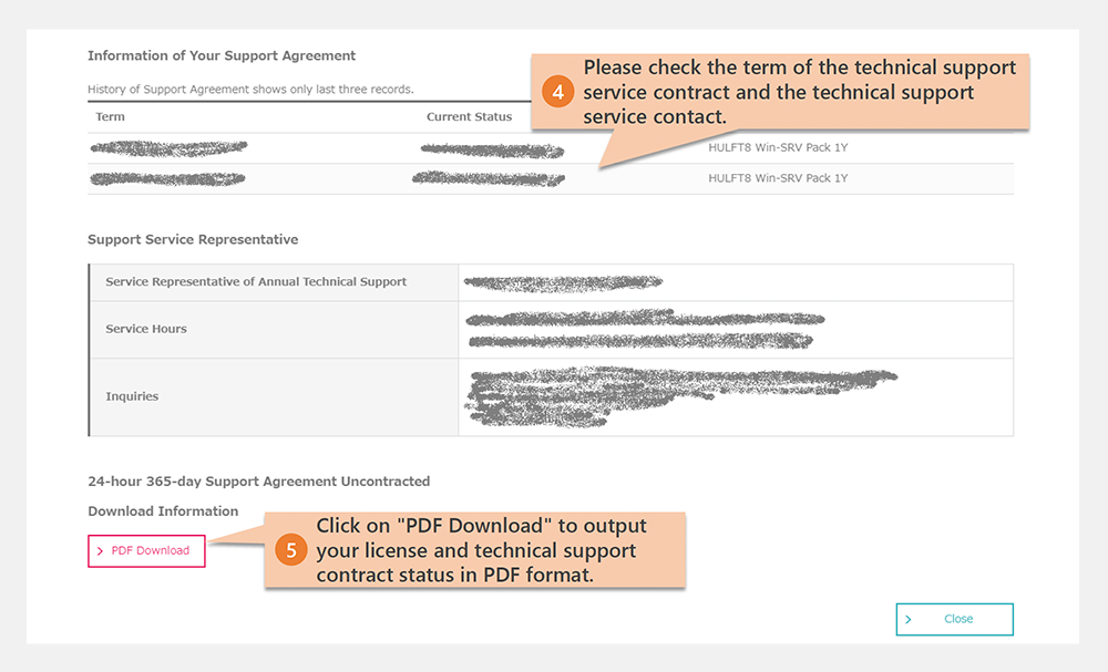Confirmation of technical support service contract status and duration of use