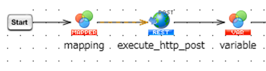 最後に[variable]アイコンを[execute_http_get]にドロップしてプロセスフローを作成、同じように[start]から[execute_http_post]へ、[execute_http_get]から[end]へプロセスフローを作成します。