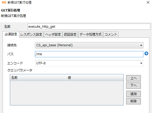 馴染みのある画面が表示されるので、以下の画像のようにパスを[/me]に変更して設定します。クエリパラメータは不要です。