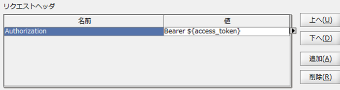最後にヘッダ設定で先ほど取得したaccess tokenを設定します。