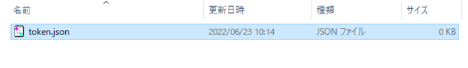 最初に作っておかなければならないファイルがあります。ローカル環境にて、token.jsonとしてテキストファイル作成します。