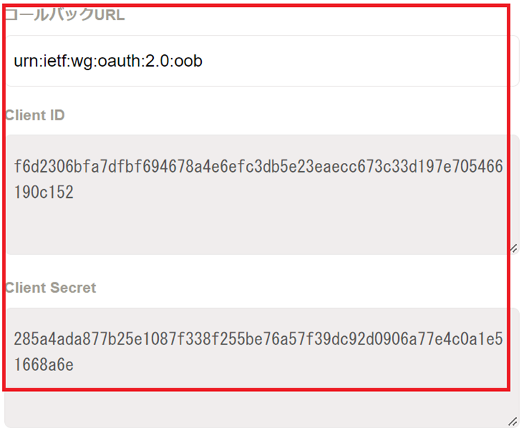 • リダイレクトURI : 自動で設定されたURL