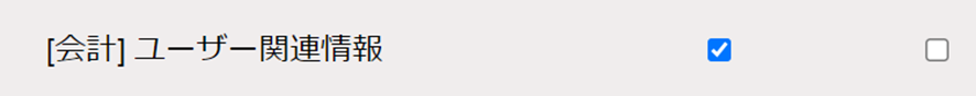 次に、権限設定タブから[ユーザー関連情報]を探して、参照をtrue(チェック)にします。