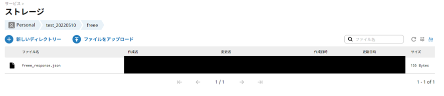 スクリプトが完了したら、HULFT Square内のエクスプローラーを開き設定したディレクトリを確認してみてください。freee_response.jsonが作成されていて、中身に先ほど作成したユーザーの情報が入っていれば成功です。(UTF-8ですので文字化けしている場合はfreee_response.jsonを右クリックしてローカルにダウンロードし、windowsのnotepadなどで表示してみて下さい)