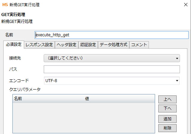 接続先のテキストボックスを選択して、追加を選択します。この設定ではRESTでの接続先のURLを設定することになります。後ほど設定する“パス”はこの設定の後ろへと付加され、最終的なendpointとなります。