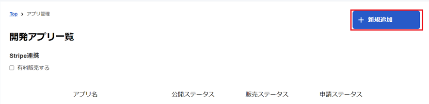 新規追加を選択してアプリケーションを作成します。