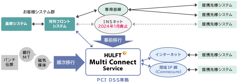 インターネットを含む多様な接続方法やHULFT、全銀TCP/IP広域IP網、SFTPへのプロトコルに対応。