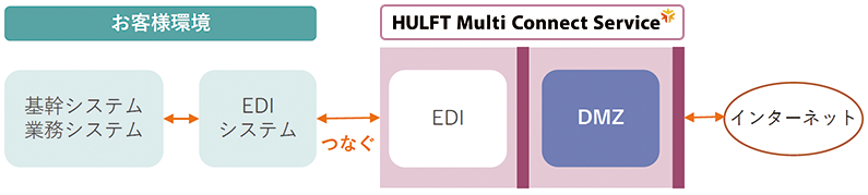 HULFTを使って、お客様システムからHULFT Multi Connect Serviceに接続するだけ。