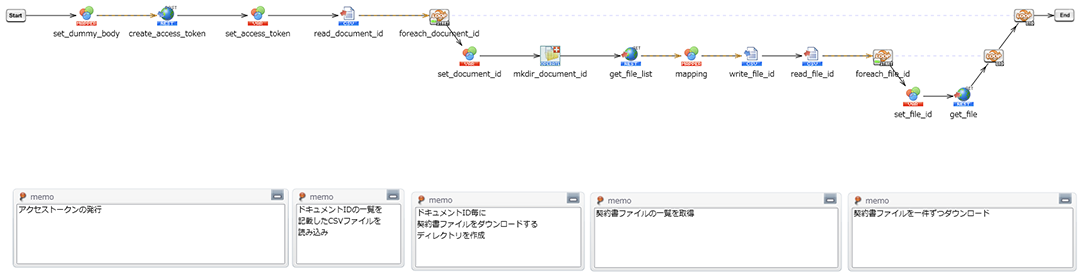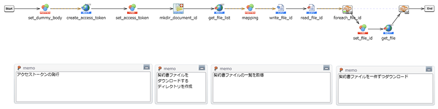 - 契約先が署名した契約書を自社内の文書管理システムに格納するために、クラウドサインからダウンロードする処理
