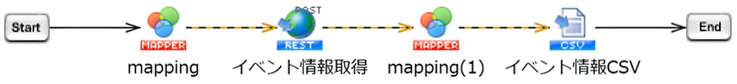 APIの取得結果はXML形式ですが、二次加工しやすいようにHULFT SquareがCSV形式に変換した上で出力します。