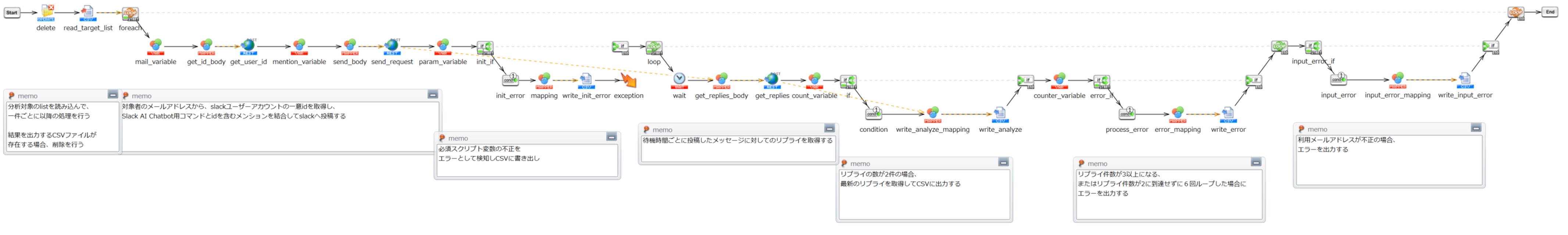 AI分析した対象社員の人物像結果をリプライとして取得し、CSVファイルに書き込みます。