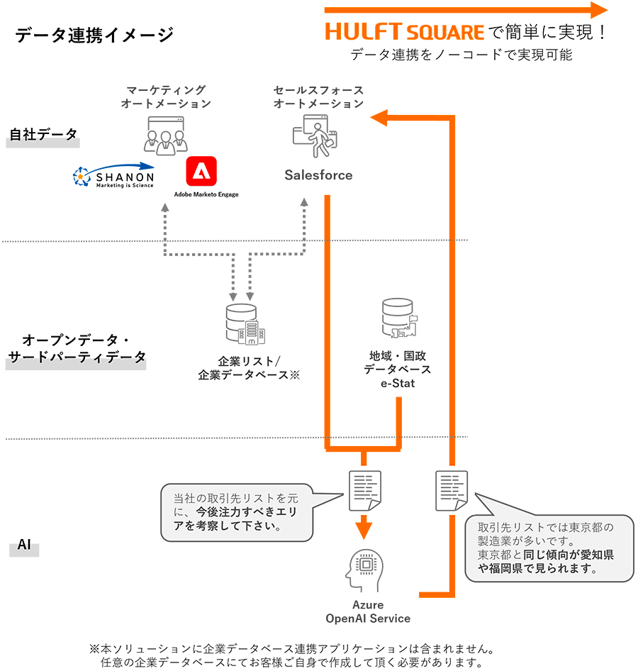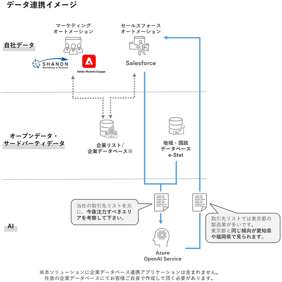 Furthermore, the system combines business partner information with e-Stat government statistical data and sends the results to the Azure OpenAI Service along with a prompt. For example, you can send and use the prompt below, or give instructions to the Azure OpenAI Service in any way you like.