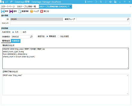 Both input (query: SELECT) and output (insertion: INSERT, update: UPDATE, etc.) can be easily set by simply selecting a table. It supports input and output using SQL statements specified by the user, and detailed settings are also possible, such as continuing with UPDATE if INSERT fails.