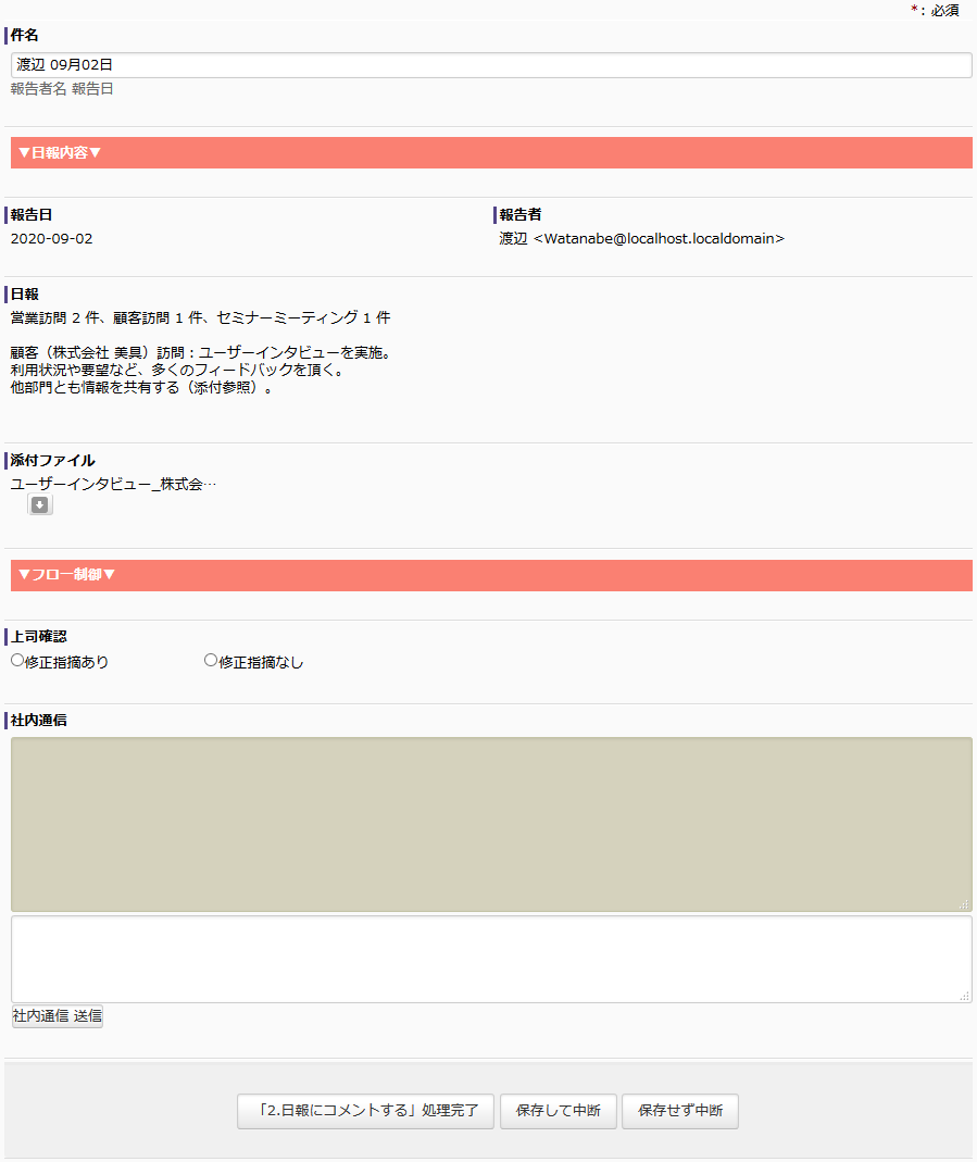 毎日の「日報」の作業をBPM化したものです。