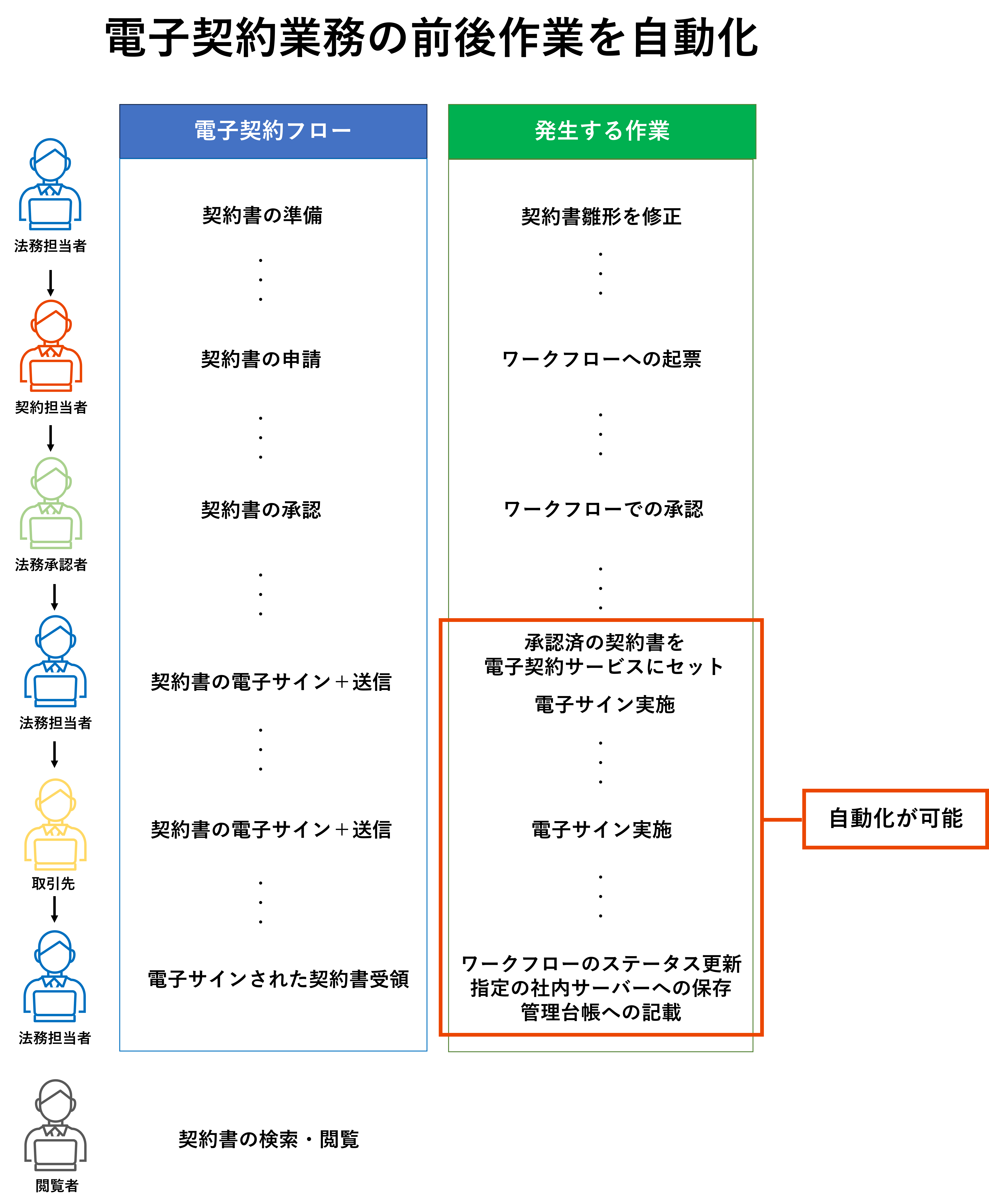 Introducing an electronic contract service has many benefits for employees, such as shortening the lead time until contract conclusion and enabling them to work from home.