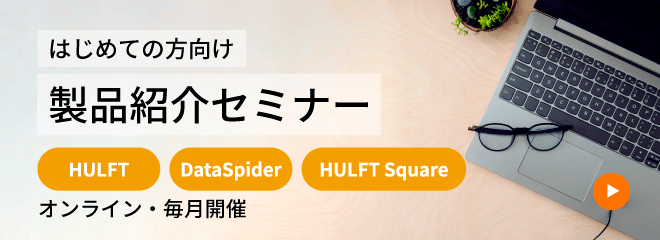 HULFTやDataSpider Servistaを中心に、製品の操作感や操作方法を視聴できる無償のセミナー(動画)をご案内しています。データ連携ツールの導入を検討されているお客様、これから製品利用を始めるお客様を対象としたセミナーです。