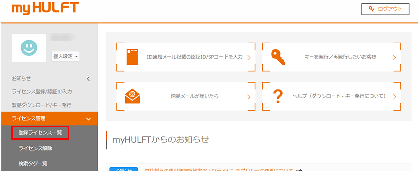 弊社ご契約のお客様は、myHULFTにログインし、登録したライセンスにより、技術サポートサービスをご利用いただくことができます。