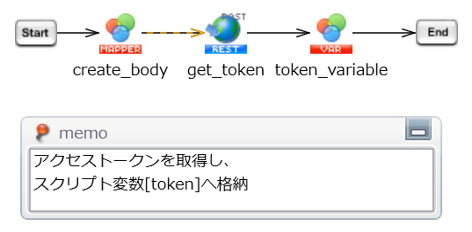 取得したトークンはスクリプト出力変数[token]にセットします。