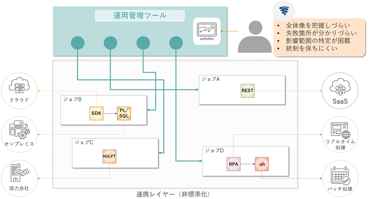 連携方式の乱立が招く 統制困難なシステム運用管理